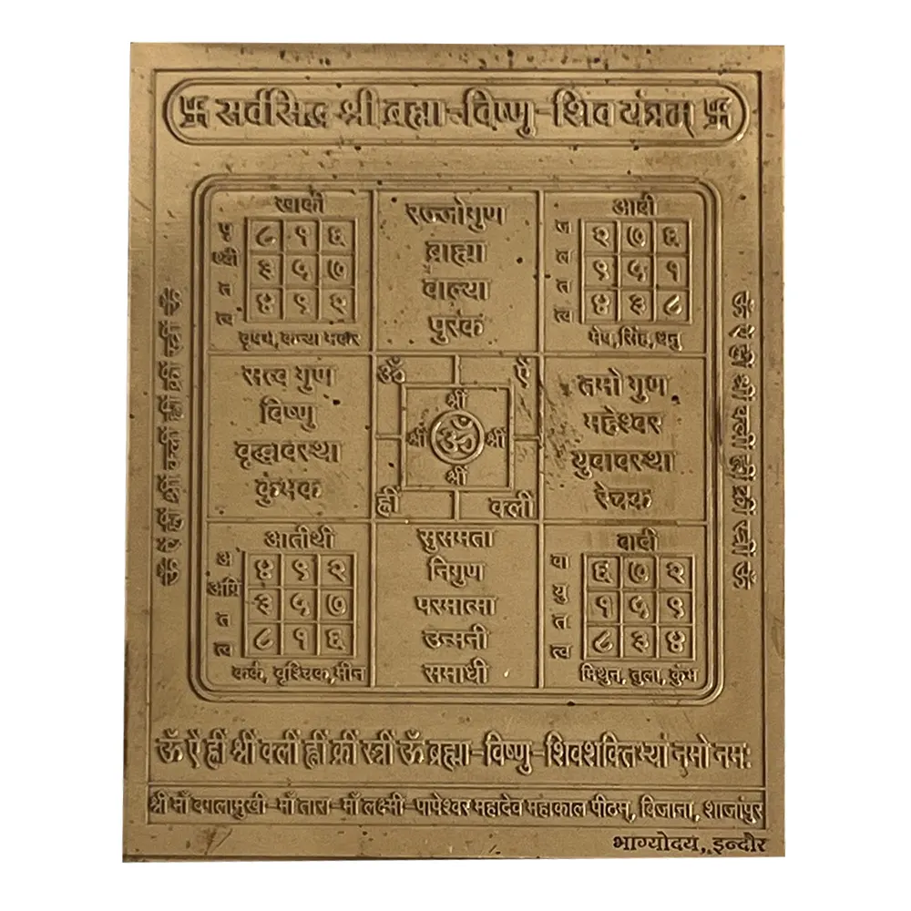 & Free Shippingश्री सर्वसिद्ध ब्रह्मा-विष्णु-शिव यंत्र एक अद्भुत और शक्तिशाली यंत्र है, जिसे हिन्दू धर्म में त्रिदेवों – ब्रह्मा, विष्णु और शिव के समर्पण के रूप में पूजा जाता है। यह यंत्र समस्त सिद्धियों, कल्याण, और जीवन में संतुलन की प्राप्ति के लिए अत्यंत महत्वपूर्ण माना जाता है। त्रिदेवों की उपासना से व्यक्ति को सभी प्रकार की मानसिक, भौतिक और आध्यात्मिक बाधाओं से मुक्ति मिलती है और यह यंत्र जीवन में सुख, शांति और समृद्धि लाने में सहायक होता है।
