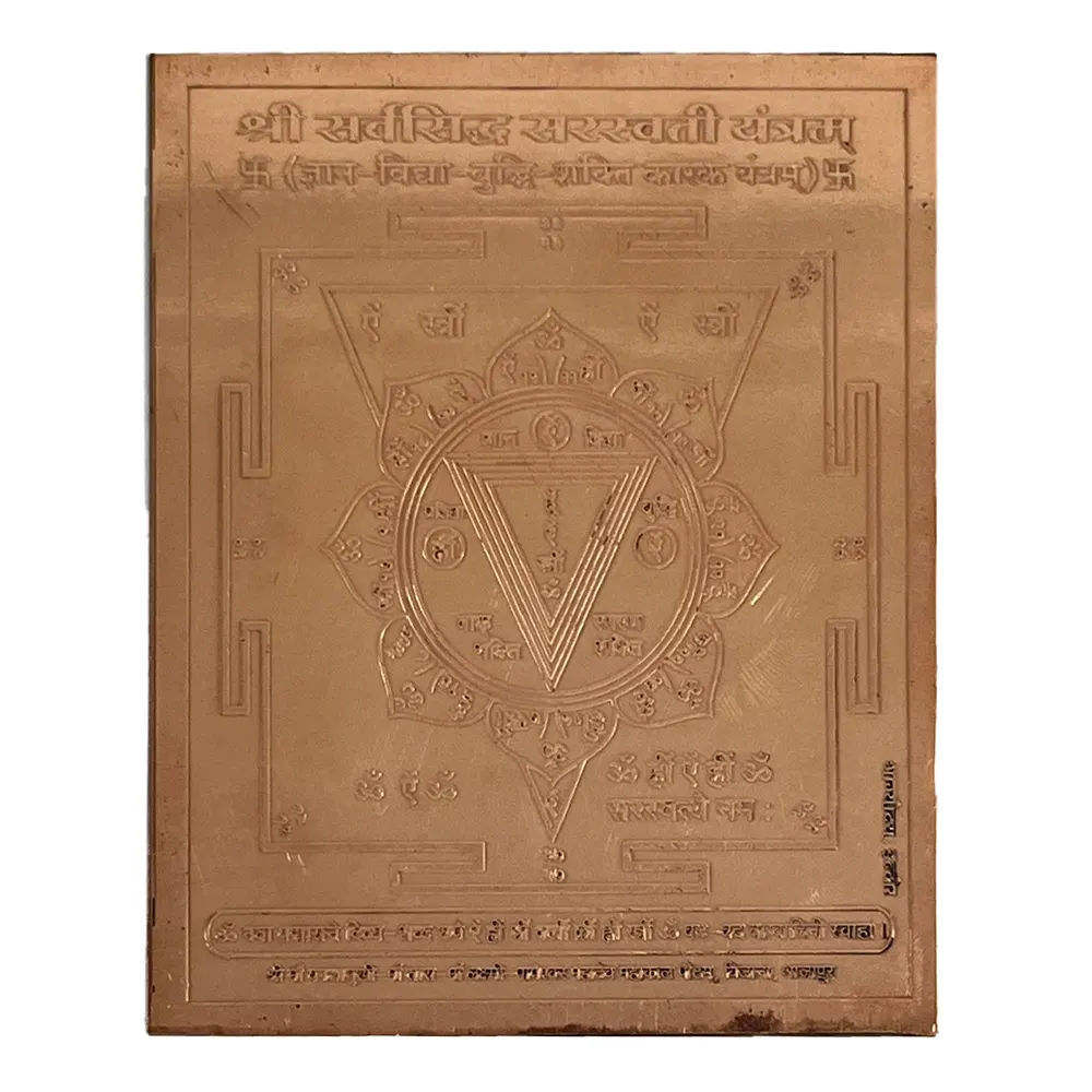 & Free Shippingश्री सर्वसिद्ध सरस्वती यंत्रम् शिक्षा, विद्या, ज्ञान और बुद्धि की देवी माँ सरस्वती का एक अत्यंत प्रभावशाली और सिद्धिदायक यंत्र है। यह यंत्र विशेष रूप से उन लोगों के लिए लाभकारी है जो शिक्षा, लेखन, संगीत, कला, या विज्ञान के क्षेत्र में उत्कृष्टता प्राप्त करना चाहते हैं। माँ सरस्वती का आशीर्वाद प्राप्त करने के लिए इस यंत्र की पूजा और साधना की जाती है। यह यंत्र छात्रों, विद्वानों, शिक्षकों, कलाकारों और संगीतकारों के लिए अत्यधिक शुभकारी माना जाता है।