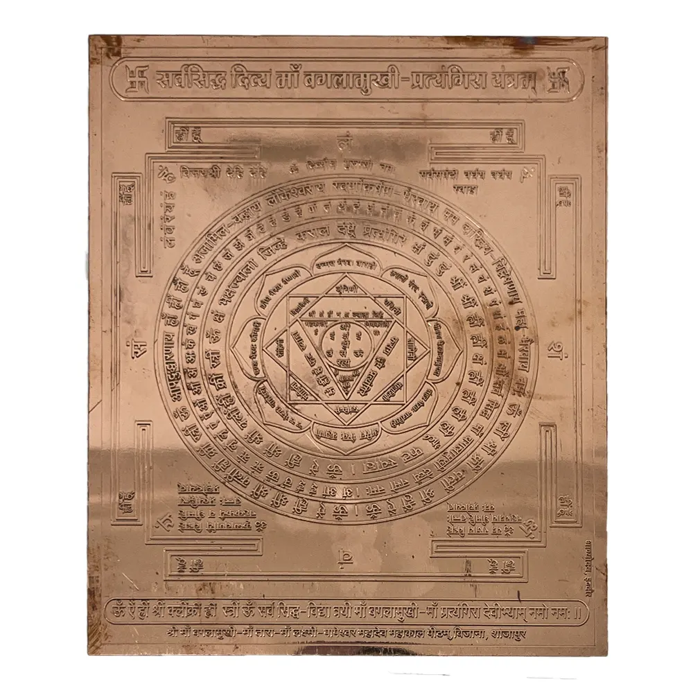 सर्वसिद्ध दिव्य माँ बगलामुखी-प्रत्यंगिरा यंत्रम् अत्यंत शक्तिशाली और प्रभावी यंत्र है, जो जीवन में शत्रुओं के दुष्प्रभाव को समाप्त करने और समस्त प्रकार की बाधाओं को दूर करने में सहायक है। यह यंत्र विशेष रूप से उन लोगों के लिए उपयोगी है, जो शत्रुओं, विरोधियों, नकारात्मक ऊर्जा और जादू-टोने से परेशान हैं। माँ बगलामुखी और माँ प्रत्यंगिरा दोनों देवी अत्यंत क्रूर और शक्तिशाली देवियाँ हैं, जो दुष्टों और बुराईयों का नाश करती हैं। इस यंत्र की साधना से व्यक्ति अपने शत्रुओं पर विजय प्राप्त करता है और जीवन में शांति व समृद्धि का अनुभव करता है।
